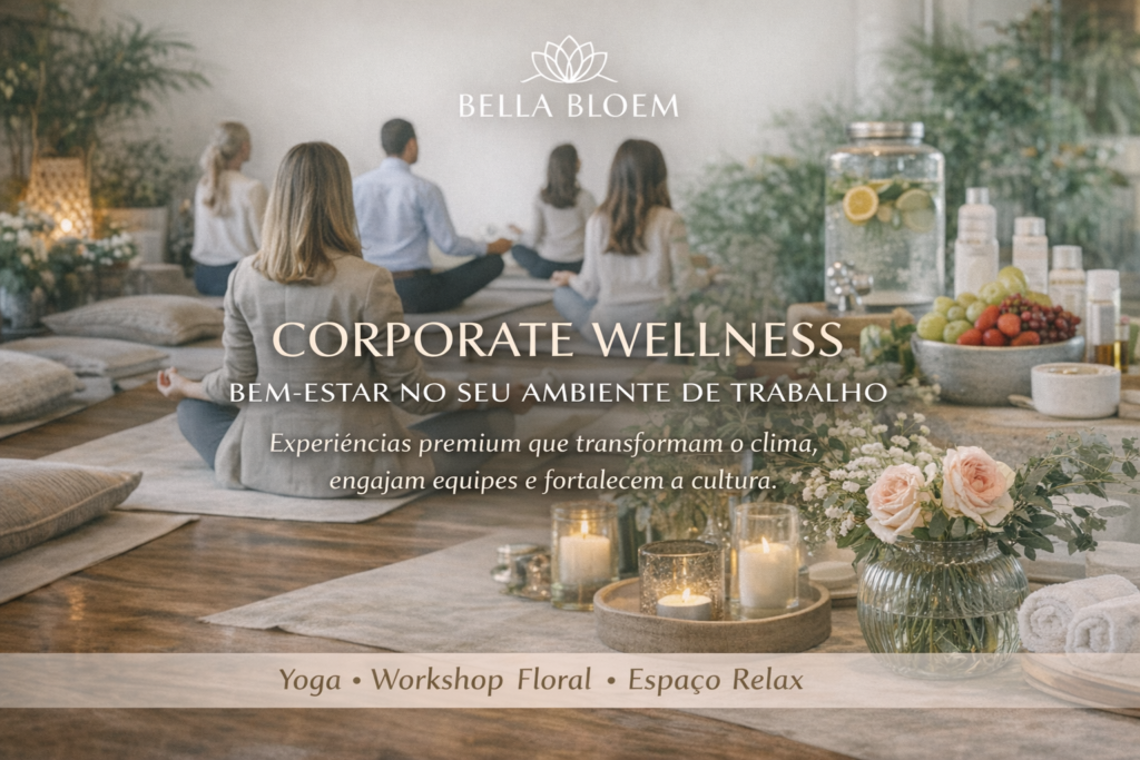 Experiências de bem-estar corporativo com yoga, workshop floral e ambientação biofílica. Pacotes para SIPAT, ESG e engajamento. Peça proposta.